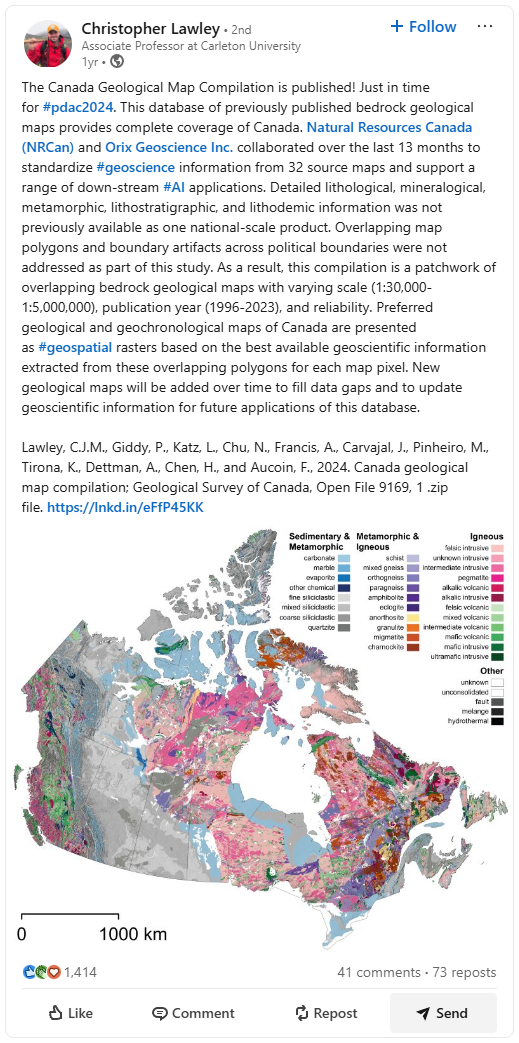 To create a unified, digital bedrock map of Canada by combining and standardizing all federal, provincial and territorial datasets, to support country-wide target generation and mineral exploration.