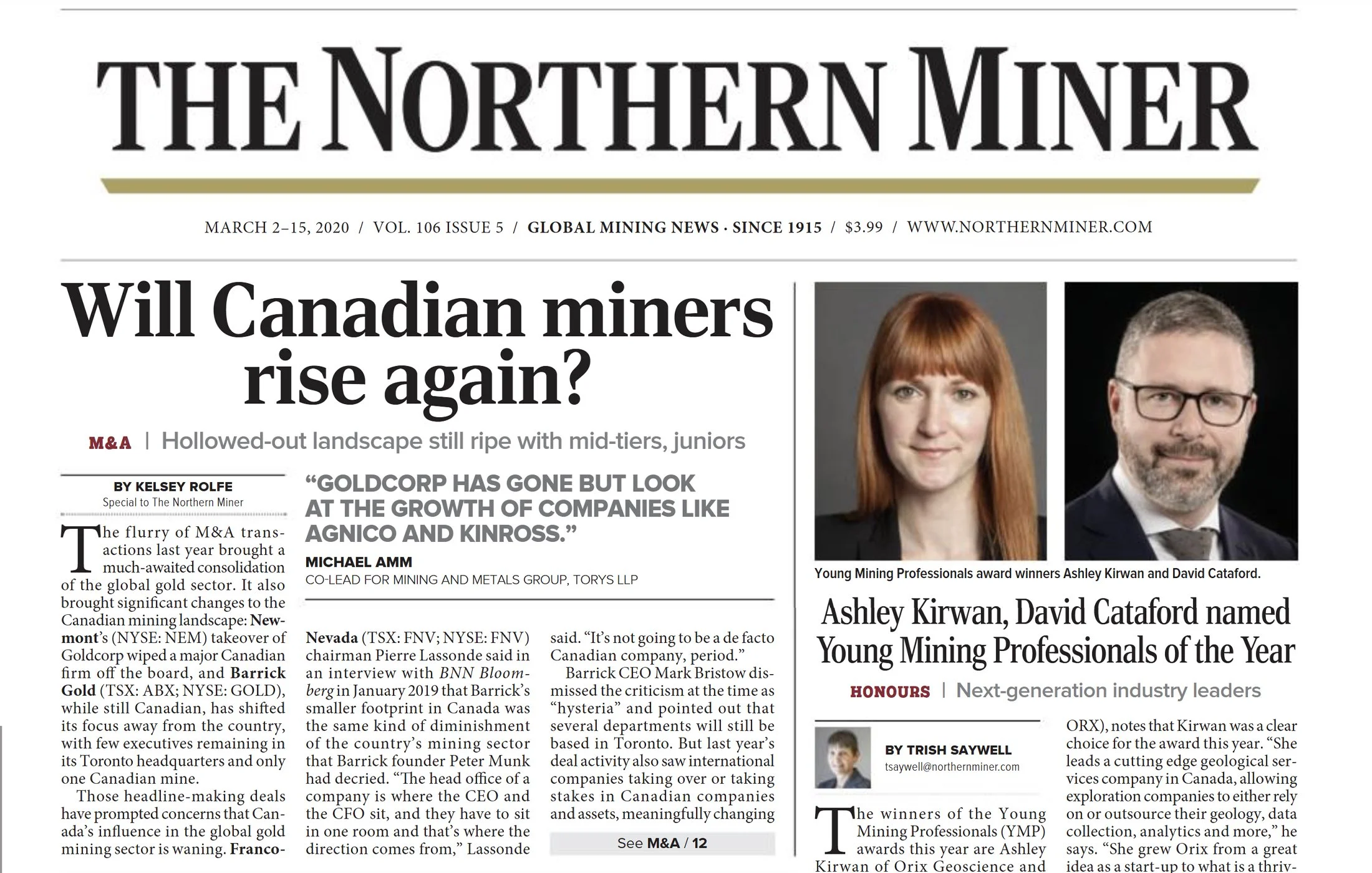 ARTICLE (The Northern Miner, March 20, 2020):